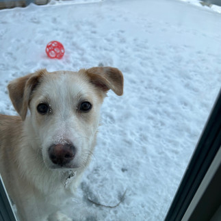 Sophie is just over four months old now. She has quite a personality and keeps us entertained. She steals whatever she can, including socks, mittens, dishcloths, and underwear. It can be embarrassing! She recently got her first taste of human snacks when Pete turned his back for a moment. Sophie snuck up behind him and grabbed half of his coffee cinnamon muffin! She sure wolfed that down quickly! She has taken over the living room ā itās her gym/playroom and contains most of her many toys. She sleeps through the night but still has separation anxiety. She doesnāt like to be alone and will follow us from room to room. Thatās a real problem and concern for her when we arenāt in the same room! She runs back and forth between the rooms, tripping over the stairs and her toys in her rush to find us. She always wants to be wherever the action is! Her favourite time of day seems to be the evening. We all go downstairs to watch a bit of television or a movie on Netflix. We are in the same room ā lol, and Sophie can relax. She sleeps on the floor at our feet or on a big comfy armchair she has claimed as her own. Every day brings something new and exciting with Sophie. More updates to follow.